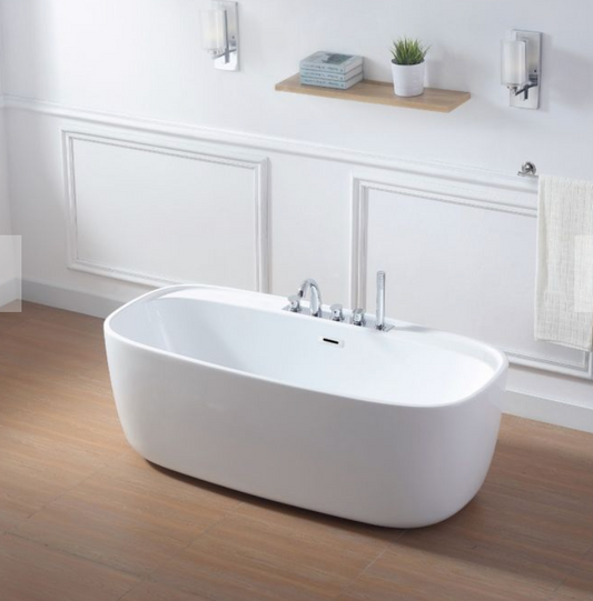 Baignoire ovale autoportante en blanc, acrylique (60in, 67in)