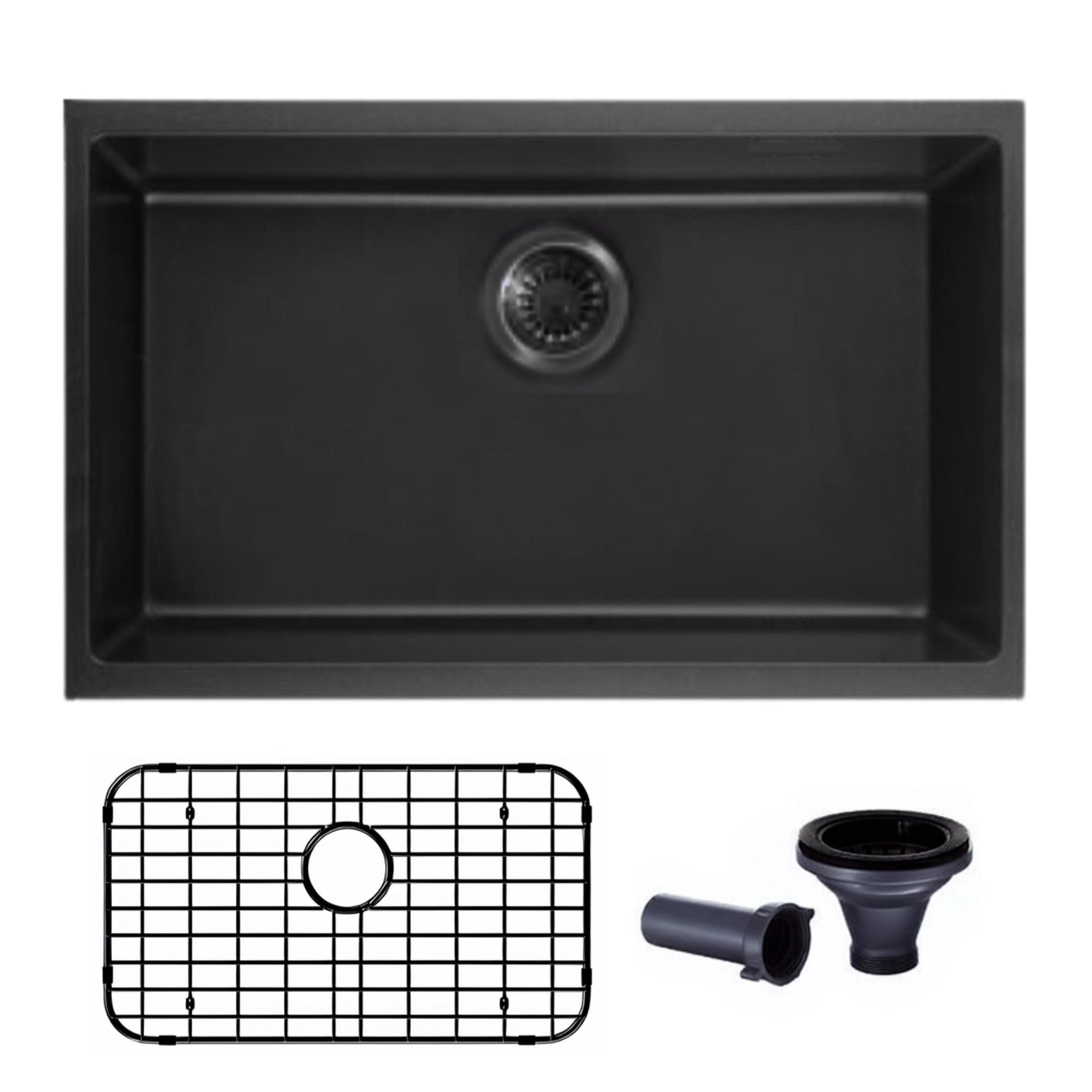 Évier de cuisine simple de 30 x 18 pouces en composite de granit noir, à montage sous plan